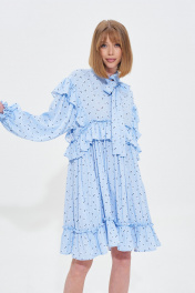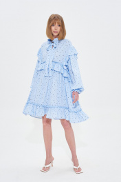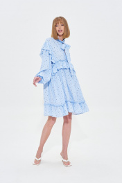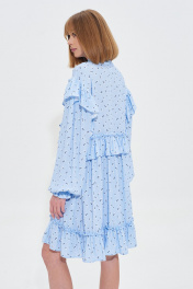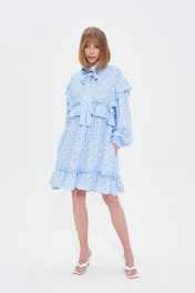 Голубое платье с оборками и принтом в мелкий цветочек Mixan 5052