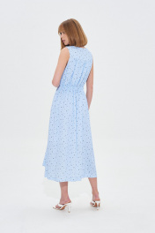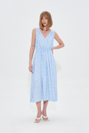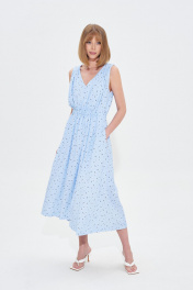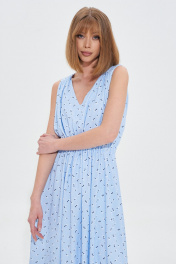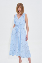 Платье свободного силуэта из небесно-голубой вискозы с принтом в мелкий цветок. Талия с кулисой на резинке. Длина 120 см