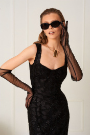Платье из кружевного эластичного полотна. Лиф с чашками Push-up. Молния по спинке. Длина платья 119 см.