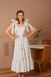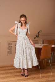 Платье в длине миди. Банты на шлейках съемные. Лиф с чашками Push-up. Молния на спинке. Длина платья 132 см.