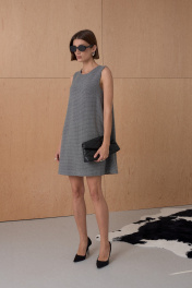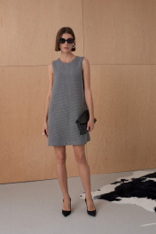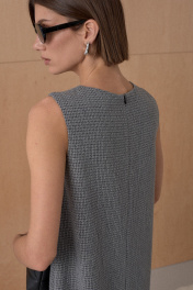 Платье в длине мини А-силуэта из твида. Платье на подкладке. Длина от плечевой точки у основая шеи 88 см. Состав 73% ПЭ, 21% вискоза, 6% спандекс