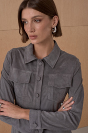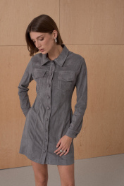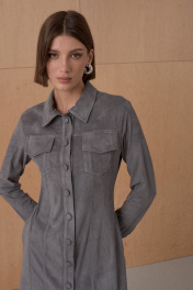 Платье из трикотажного полотна с эффектом замши. Длина от плечевой точки у основая шеи 86 см. Состав ПУ 52%, ПЭ 48%