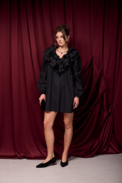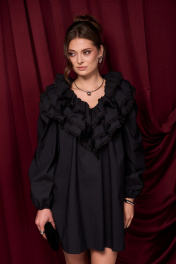 Платье из хлопка премиального качества. Изделие с пышным акцентным воротником. В боковых швах карманы. Платье на подкладке. Воланы декорированы тесьмой. Длина платья 90 см 42-44 р-р ОГ 127-129 см, ОТ 136-138 см; 46-48 р-р ОГ 131-133 см, ОТ 140-142 см