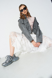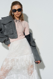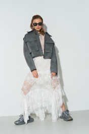 Дизайнерская юбка из кружева. Юбка декорирована множеством рюш из кружева. Юбка на подкладке. Длина юбки по самой длинной части 116 см. Состав 100% ПЭ