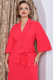 Бестселлер нашей коллекции - двухпредметный костюм, состоящий из жакета и юбки. Акцентом данного комплекта является съемный пояс .Жакет прилегающего силуэта с отрезной баской по переду и спинка с рельефами. Рукав-реглан.Юбка А-силуэта на притачном поясе, сзади с резинкой. Застежка на тесьму-молнию в боковом шве.Костюм на подкладке.