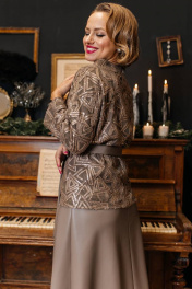 Блуза, юбка Мода Юрс 2718-3 темно-бежевый_пайетки