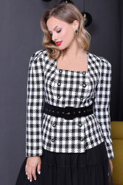 Самая красивая двойка! Любимый образ от бренда "Мода-Юрс". Они созданы друг для друга: Жакет в черно-белую клетку и юбка из сетки. Жакет прилегающего силуэта, по переду с рельефами. Спинка со средним швом и талиевыми вытачками. Рукав втачной, двухшовный, со складками по окату. Юбка А-силуэта, на притачном поясе, сзади с резинкой. Застежка на тесьму-молнию в боковом шве. Комплект дополнен поясом, что позволяет регулировать ширину по линии талии. длина жакета: 103 см длина юбки: 70 см
