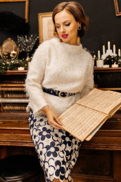 Мы держим фокус на комфорте. А наша одежда подчеркивает Вашу индивидуальность и естественность. Сегодня мы предлагаем Вам новинку: блузон в тандеме с юбкой из сетки с вышивкой. Блузон прямого силуэта со спущенной линией плеча. Спинка со средним швом. Воротник-стойка. Юбка А-силуэта, на притачном поясе-кокетке. Застежка на тесьму-молнию в боковом шве. Комплект на подкладке. Дополнением является съемный пояс, который может подчеркнуть линию талии. длина спинки блузона: 59 см длина юбки: 70 см длина рукава: 31,5 см