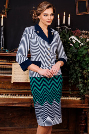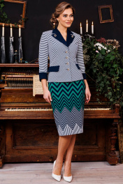 Жакет и юбка мультиколор деловой стиль демисезон Мода Юрс 2845 полоска_зеленый