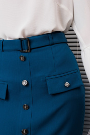 Эта юбка-карандаш - воплощение классической офисной элегантности. Ее строгий силуэт, подчеркивающий линию бедер, создает безупречно профессиональный образ. Юбка зауженная к низу. Изюминка дизайна спереди: элегантная шлица, декорированная аккуратной отделкой из пуговиц. Эта деталь не только добавляет динамику и визуальный интерес, но и обеспечивает свободу движения. Имитация карманов с рамками и клапанами с отделочными пуговицами. Боковая застежка-молния обеспечивает аккуратную посадку и легкое надевание, сохраняя чистоту линий спереди и сзади. Притачной пояс с резинкой сзади. Юбка дополнена съёмным поясом с пряжкой. На подкладке. Такая юбка является не просто базовой вещью, а законченным стильным акцентом Вашего делового гардероба. Она безупречно сочетается с блузами, жакетами и топами, создавая элегантный и уверенный ансамбль.