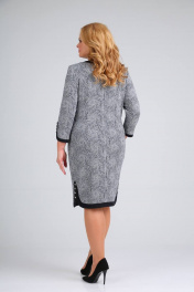 Длина изделия 98см, рукав 50см. Платье женское полуприлегающего силуэта, без подкладки, тесьма-молния в среднем шве спинки. Перед с нагрудными и талиевыми вытачками. Спинка с талиевыми вытачками, со средним швом. Рукав одношовный втачной. Горловина обработана бейкой и обтачкой. Низ переда, спинки, рукава обработан фигурной бейкой с закругленными концами, застегивается на навесные петли и пуговицы.