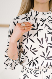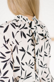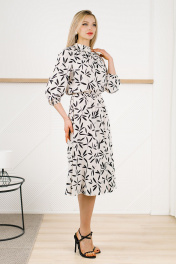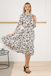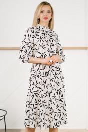 Нежное и утонченное платье летнее женское на все случаи жизни. Выполнено из непрозрачной плательной ткани. Модель отрезная по талии с резинкой по шву притачивания юбки, что выгодно подчеркнет достоинства фигуры и скроет недостатки. Лиф полуприлегающий со сборкой по горловине. Юбка расклешенная. Рукав реглан с резинкой по низу. Воротник-стойка с маленькой рюшей по верхнему краю переходит в завязывающийся бант на спинке. Декор в виде банта добавляет легкости всему образу. Платья на весну такого кроя достаточно универсальны в плане посадки на любую фигуру, даже нестандартную. Такая модель отлично сочетается с босоножками на тонких ремешках или с туфлями с открытыми мысами на небольшом квадратном каблуке. В новом сезоне в тренде минимализм, поэтому сочетать нарядное платье лучше всего с обувью без лишнего декора и минимальным количеством аксессуаров. Можно подобрать тонкий пояс, делающий силуэт более выразительным, и лодочки на шпильке. В любом случае получится яркий актуальный образ.