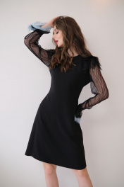 Черное платье из текстиля и шифона для нарядных и повседневных случаев Motif 1404
