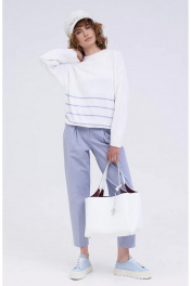 Комфортные брюки свободного силуэта, выполнены из хлопкового полотна с эластаном. Модель с высокой посадкой, верхний срез обработан притачным поясом со шлевками. Изделие с небольшими складками и функциональными карманами с отрезными бочками. Брюки декорированы отделочными строчками, прекрасно подойдут для создания различных летних образов.
