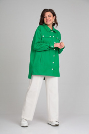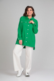 Стильная женская рубашка, выполненная из джинсовой ткани (не тянется). Рубашка прямого силуэта со спущенным плечом. По переду отрезные кокетки, в шов которых вставлен клапан с рельефами от кокетки. В рельефном шве функциональный карман с листочкой. Застежка центральная на петли-пуговицы. Спинка с отрезной кокеткой, нижняя часть со средним швом. Нижняя часть спинки декорирована стильным пришивным элементом. Рукава втачные, двухшовные, по низу с притачной манжетой, застегивающейся на пуговицу. Воротник отложной рубашечного типа. По боковым швам разрезы. Низ рубашки прямой, разноуровневый. Длина по среднему шву спинки – р50,52,54-84, р56,58,60-85 Длина рукава во всех р-ах – 60 Ширина рукава на уровне глубины проймы ½ - р50-21,5, р52-22, р54-22,5, р56-23, р58-23,5, р60-24 ОГ ½ - р50 – 64, р52-66, р54-68, р56-70, р58-72, р60-74 ОТ ½ - р50-64, р52-66, р54 ОБ ½ - р50-65, р52-67, р54