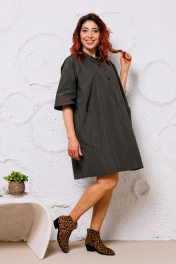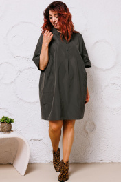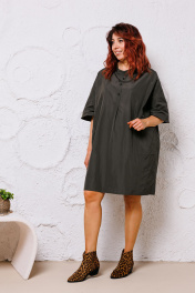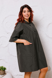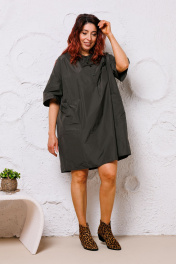 Платье оверсайз из ткани с рельефными швами и накладными карманами Mubliz 145 хаки