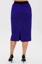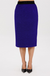 Нарядный женский комплект, состоящий из блузы, топа и юбки. Блуза прямого, свободного силуэта, выполнена из органзы (не тянется). Перед и спинка цельные. Горловина округлой формы, обработана окантовкой. Рукава втачные, одношовные со сборкой по окату и резинкой по низу. В комплект входит пояс из основной ткани – органзы. Топ полуприлегающего силуэта из блузочного крепа (тянется). Длина топа регулируется бретелями. Горловина переда V-образной формы, обработана обтачкой. По переду нагрудные вытачки. Юбка зауженная к низу, выполненная из крепа на трикотажной основе с люрексом (тянется), на подкладке. По заднему полотнищу средний шов, переходящий в разрез. Верхний срез оформлен поясом из отделочной эластичной резинки.