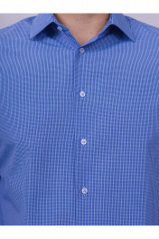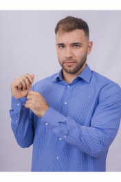 Рубашка в клетку классический крой для офиса и работы Nadex 01-088812/403-24 сине-голубой