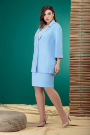 Комплект женский 2-х предметный. Жакет прямого силуэта, удлиненный с углубленной проймой и слегка спущенным плечом. Борта классические с застежкой на одну пуговицу, с накладными карманами. Спинка со средним швом. Рукав втачной внизу на притачном манжете с отворотом. Юбка классическая со шлицей, на притачном поясе, частично резинка. Длина рукава: 45 см. Длина изделия: жакет по спинке78 см, юбка 60 см.