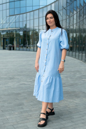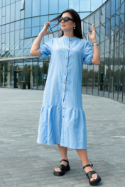 Летнее платье из льна с воланом и стойкой воротником Nati Brend 003 голубой