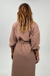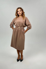 Платье свободного кроя с поясом и спущенным рукавом Nati Brend 0030 бежевый