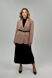 Демисезонный жакет из костюмной ткани с ремнем и шлицей Nati Brend 0032 бежевый