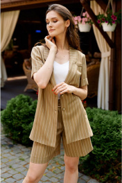 Жакет женский от бренда NELVA - это идеальный выбор для женщин, ценящих комфорт и стиль. Данная модель выполнена из костюмного полотна в полоску с добавлением шерсти, что обеспечивает не только уникальный внешний вид, но и отличную воздухопроницаемость. Жакет однобортный прямого силуэта является идеальным выбором для непринужденного и расслабленного стиля. Спереди имеются боковые рельефы с карманами. Боковые швы жакета заканчиваются разрезами и имеют шлевки для продевания пояса из основной ткани с полукольцами на конце. Особенностью модели является выполенная дизайнерская печать на подкладке. Этот жакет будет идеальным аксессуаром к любому образу как на прогулку, так и в офис или на учебу.
