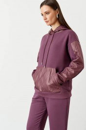 Джемпер женский от бренда NELVA - это идеальный выбор для женщин, ценящих комфорт и стиль. Данная модель выполнена из комбинированного трикотажного полотна на основе хлопка, что обеспечивет комфорт, практичность и долговечность. Худи имеет свободный силуэт и высокий воротник-стойку на запах. Капюшон изделия выполнен с кулиской и декоративными завязками с наконечниками. Спущенная линия плеча придает модели непринужденность и расслабленность. Рукава и низ джемпера на манжете-резинке, что делает его вид завершенным. Спереди изделия имеется накладной карман «Кенгуру». Особенностью худи являются выполенные из болоньевой ткани накладной карман, капюшон и вертикальные вставки на рукавах. Джемпер не стесняет движения, одновременно скрывает недостатки и подчеркивает достоинства фигуры. Вы будете чувствовать себя комфортно в течение всего дня.