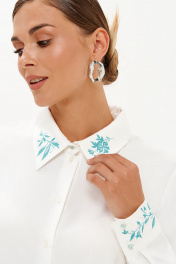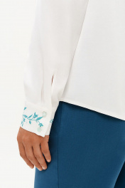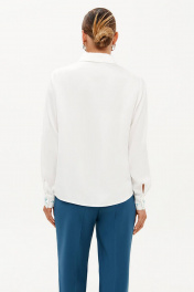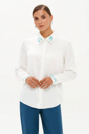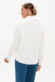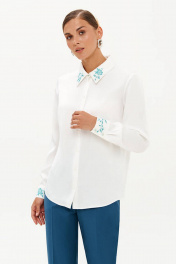 Элегантная блузка прямого силуэта от бренда NELVA - незаменимый элемент для офисных будней и торжественных случаев. Прекрасно сочетается с костюмными брюками, юбками и жакетами, позволяя создать безупречную деловую капсулу. Особую изюминку и шарм блузке придает дизайнерский принт на манжетах и воротнике. Отложной воротник-стойка придает формальность и сдержанность, отлично подходит для делового стиля. Центральная застежка на пуговицы удобно расстегивать и застегивать. Рукава сосборены на манжеты с разрезом и застежкой на пуговицы - элегантные детали, задающие стиль. В шов манжеты заложены складки: добавляют изысканности. Спинка и перед с плавным закруглением по низу позволяют носить блузку как свободно, так и заправленной. Блузка декорирована печатью со стразами стильный акцент, подчеркивающий индивидуальность. Эта блузка станет отличным выбором для уверенных в себе женщин, ценящих комфорт и стиль. С любовью и заботой о Вас, команда бренда NELVA!