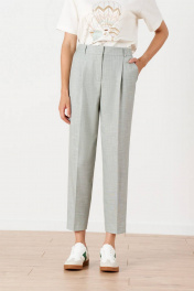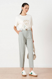 Классические прямые брюки, слегка зауженные к низу, выполнены из высококачественного костюмного полотна в нежном серо-зеленом оттенке и станут удобным дополнением весенне-летнего гардероба. Сочетайте брюки с футболкой, жакетом или рубашкой из той же капсулы для завершения стильного аутфита. Притачной пояс со шлевками, по спинке собранный на резинку повышает удобство и позволяет носить ремни. В шов пояса заложены складки, переходящие в стрелки, поддерживают элегантность и вытягивают силуэт. Застежка на молнию, потайные крючки и пуговицу обеспечивает надёжную фиксацию. Спереди косые боковые карманы функциональны, добавляют практичности. Закажите брюки прямо сейчас и наслаждайтесь стилем и удобством ежедневно! С любовью и заботой о Вас, команда бренда NELVA!