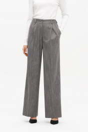 Широкие брюки-палаццо из вискозы с ремнем и стрелками Nelva 31172 серый жаккард