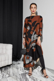 Платье Nelva 51223 желто-коричневый-принт