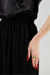 Брюки-юбка свободного кроя из трикотажного гофре, верхний срез представлен широкой резинкой.