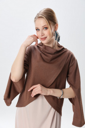 Элегантный укороченный джемпер-кейп прямого свободного силуэта с округлой горловиной и фигурным лифом. Рукав втачной широкий, от линии локтя до запястья есть дополнительное отверстие для рук.