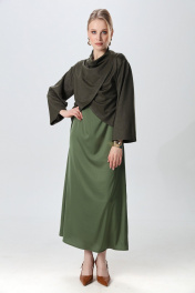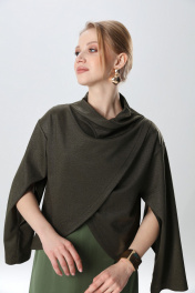 Элегантный укороченный джемпер-кейп прямого свободного силуэта с округлой горловиной и фигурным лифом. Рукав втачной широкий, от линии локтя до запястья есть дополнительное отверстие для рук.