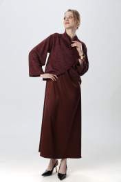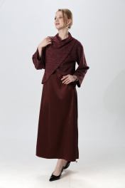 Элегантный укороченный джемпер-кейп прямого свободного силуэта с округлой горловиной и фигурным лифом. Рукав втачной широкий, от линии локтя до запястья есть дополнительное отверстие для рук.
