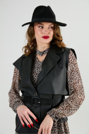 платье - 100% полиэстер, шифон, жилет - 96% полиэстер, 4% спандекс, экокожа