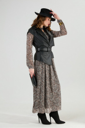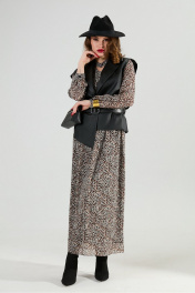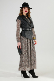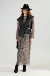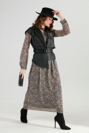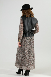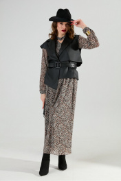 Жилет, платье NikVa 1020-1 коричневый мультиколор и чёрный
