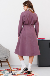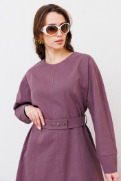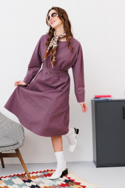 Платье миди полуприлегающего силуэта отрезное по линии талии с расклешенной юбкой. Перед и спинка со средним и рельефными швами. Горловина округлой формы. Крой рукава с верхним и нижним швами. Притачная манжета заужена к низу. В комплекте входит пояс из основной ткани.