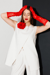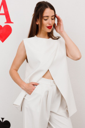 Жилет на запах из текстиля с застежкой-петлями NikVa 543-1 молоко