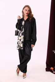 Стильные свободные брюки с широким поясом и карманами NikVa 705-4 чёрный
