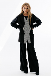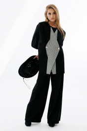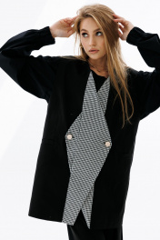 Деловой двубортный жилет оверсайз с карманами-листочками NikVa 709-2 чёрный+чёрно-белая_гусиная_лапка