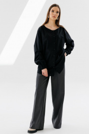 Рубашка прямого кроя с длинными рукавами и защипами NikVa 715-1 чёрный