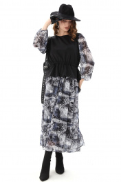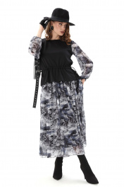 Платье NikVa 740-19 чёрный_ серая_абстракция
