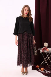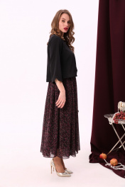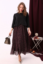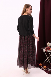 Комбинированное макси платье с V-образным вырезом и шифоном NikVa 740-6 чёрный+винный_ леопард