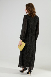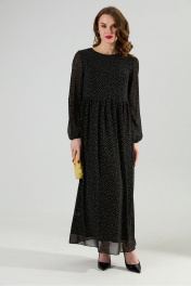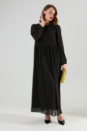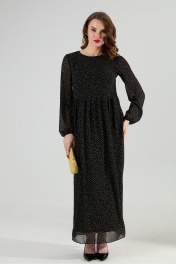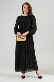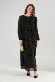 Платье макси прямого силуэта с округлым вырезом, отрезное по линии талии. Рукав немного приспущен, нижний край рукавов оформлен резинкой. Изделие на подкладке.