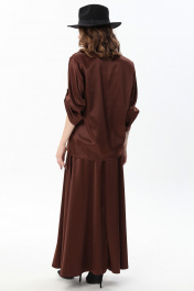 Юбка - солнце макси с узким поясом. В боковых швах расположены карманы. Застёжка на петлю и пуговицу и молнию по спинке.