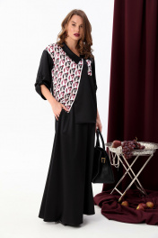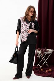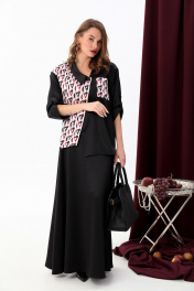 Жакет рубашечного типа асимметричный на каждый день NikVa 902-3 чёрный+ромбы_бордо