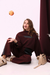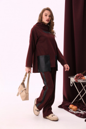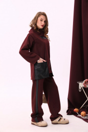Брюки с наклонными карманами и лампасами из отделочной ткани NikVa 909-1 винный+чёрный