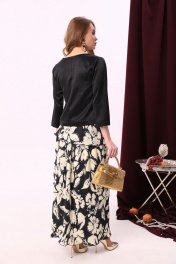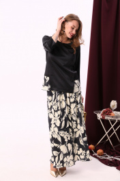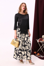 Блуза свободного кроя с складками и воротником с молнией NikVa 915-1 чёрный-беж